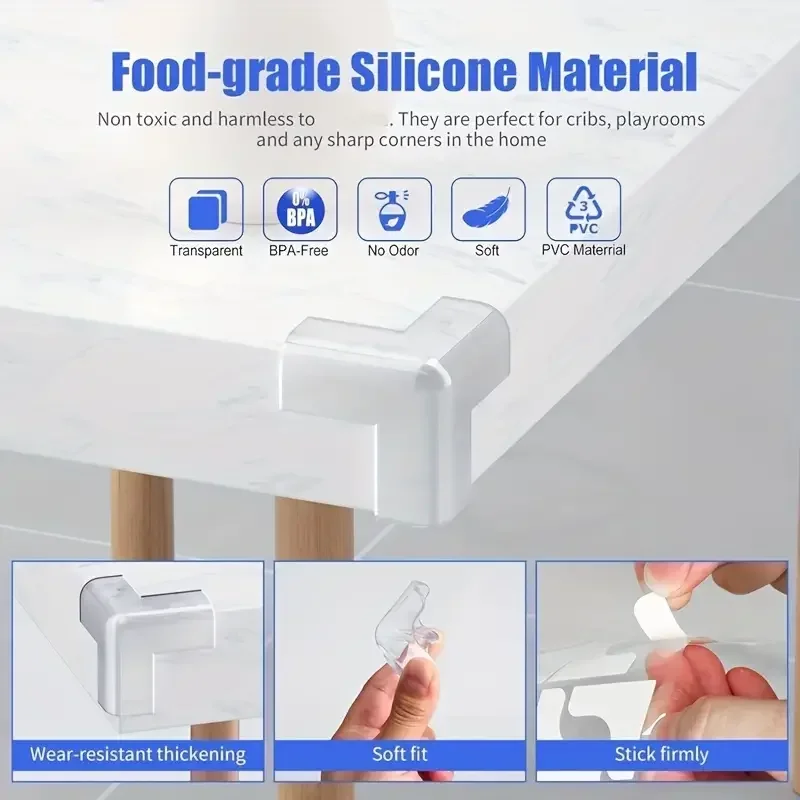 Protección de seguridad: la cubierta protectora de silicona está envuelta en la esquina de la mesa, lo que puede amortiguar eficazmente la fuerza de colisión y evitar que niños y adultos se lastimen por la colisión de la esquina de la mesa durante las actividades.